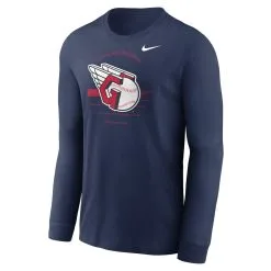 Men’s Cleveland Guardians Nike Navy Over Arch Performance Long Sleeve T-Shirt