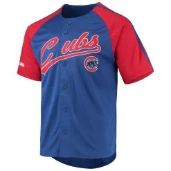 Men’s Chicago Cubs Stitches Royal Button-Down Raglan Replica Jersey