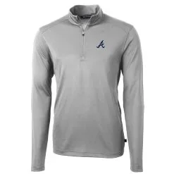 Men’s Atlanta Braves Cutter & Buck Gray Virtue Eco Pique Recycled Quarter-Zip Pullover Top