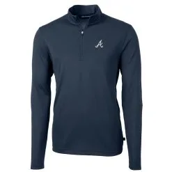 Men’s Atlanta Braves Cutter & Buck Navy Virtue Eco Pique Recycled Quarter-Zip Pullover Top